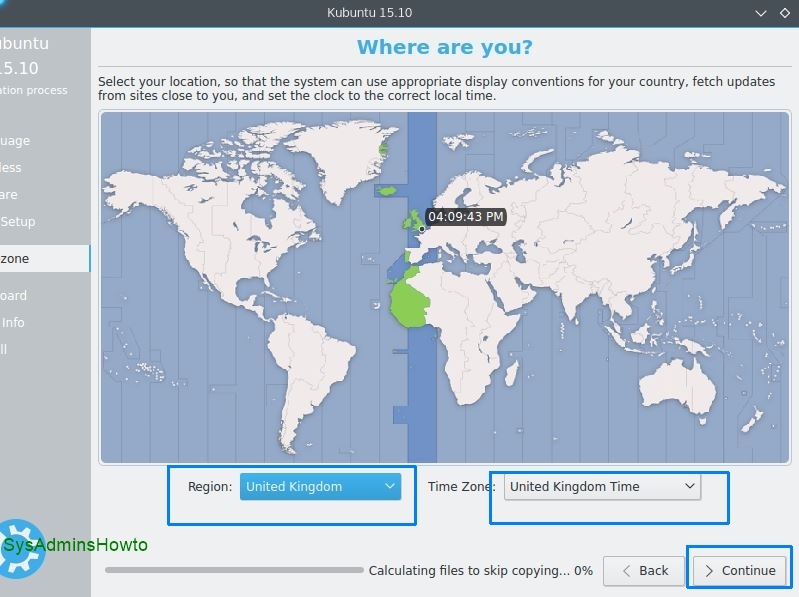 18. Choose your time zone and then click Continue.