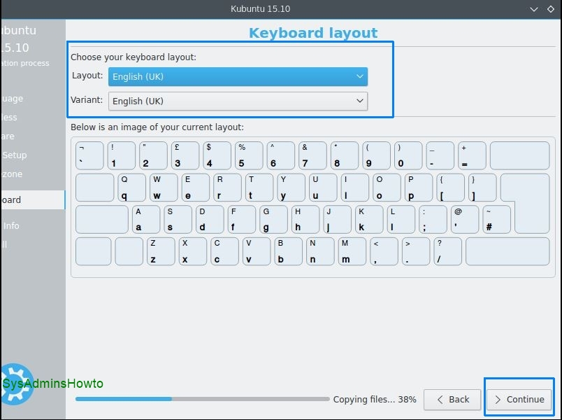 19. Choose your keyboard layout and then click Continue.