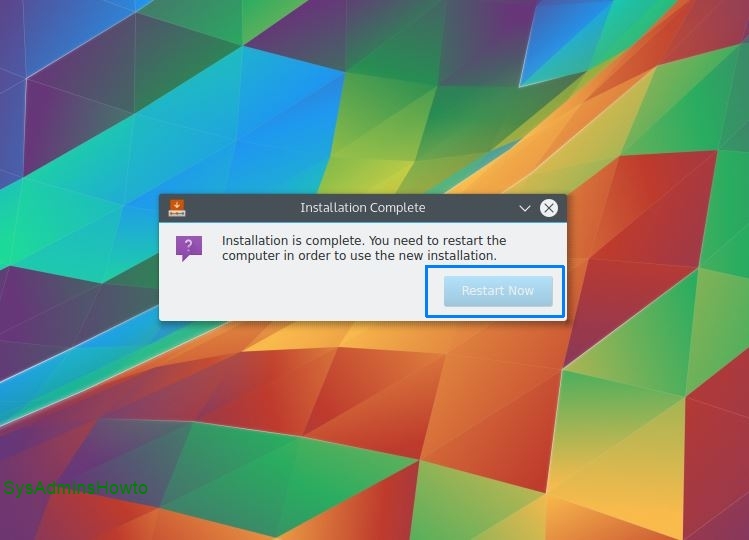 22. After the installation is complete, click Restart Now.
