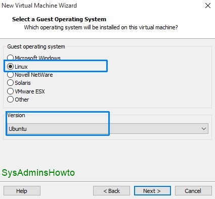 5. Choose Linux as a Guest Operating System and choose Ubuntu version.