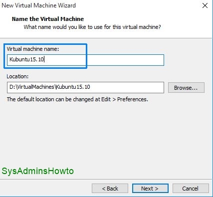 6. Give a name and set location for your Kubuntu 15.10 virtual machine files.