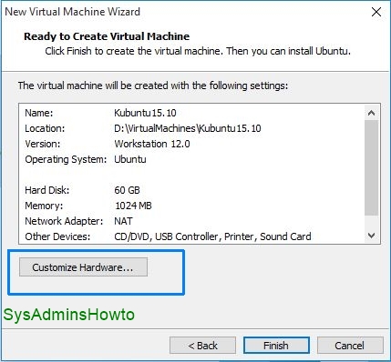 12. Click Finish at Ready to Create Virtual Machine screen.