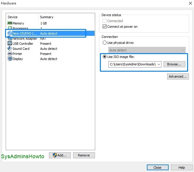 9. Go to New CD/DVD and select Use ISO image file then browse to Kubuntu 15.10 installation ISO media.