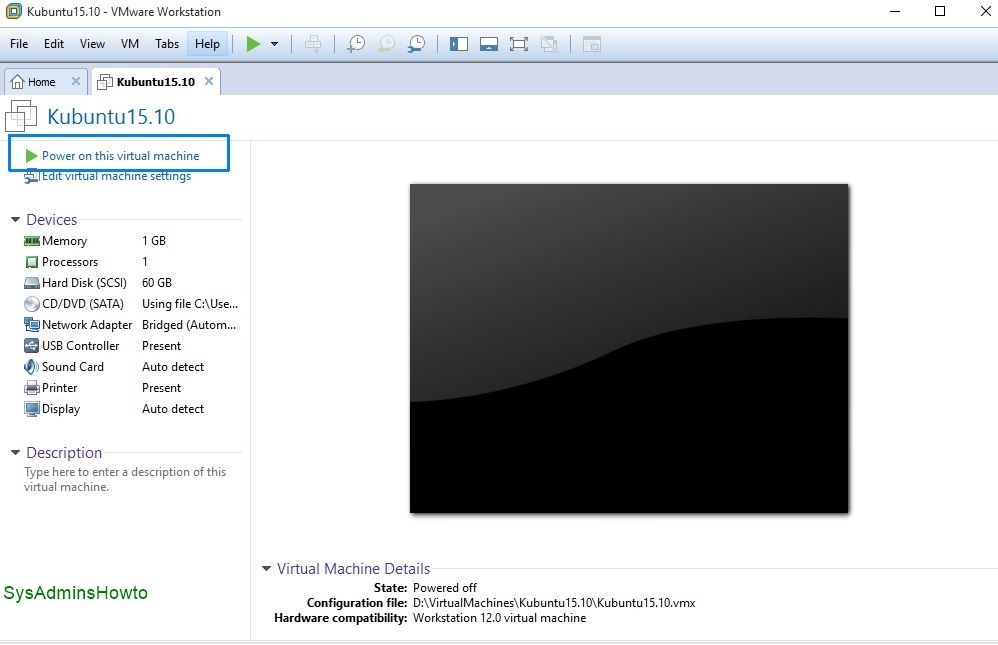 13. Click Power on this virtual machine at VMware Workstation screen.